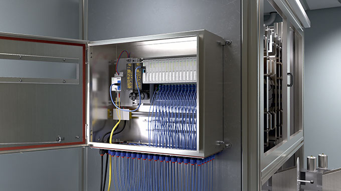 Users deploy the compact MT08-2G module carrier with the GEN-2G Ethernet Gateway. From there, data is transmitted via Ethernet to the production line controller. All excom components are certified for use in hazardous areas and can be installed in compact cabinets to save space. Integrated diagnostic functions provide status and process data. Thanks to multiprotocol support, this data can be transmitted in parallel over the same line, ensuring maximum security for process data communication. excom is considered the most compact I/O system of its kind. No other redundant I/O system for Ex areas can connect up to 960 signals in a standard control cabinet.