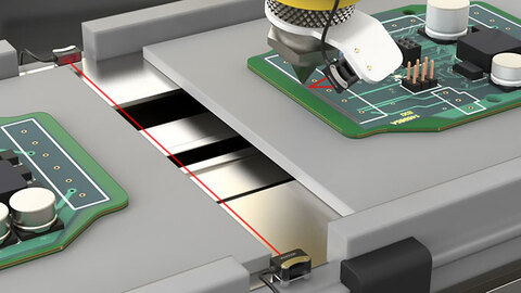 The detection of the leading edge and glue during PCB assembly can be challenging due to limited space near the glue dispenser. Monitoring the fill level of the glue dispenser is not feasible, so any gaps or bubbles in the applied glue must be detected quickly to reduce wasted product and downtime. Learn how the VS8 miniature photoelectric sensor solves this challenge, ensuring quality even in the tightest spaces.