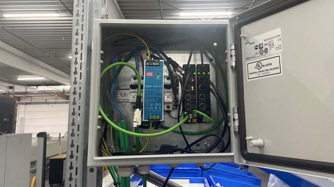 “It all starts with the operator scanning a QR code on one of these blue containers with their tablet,” Stevens explains. “The corresponding picking order appears on his tablet. He then walks along the shelves with the trolley that holds the container. There are a total of 750 picking locations in the warehouse. The operator works each aisle in turn. On his tablet, he sees a picture of the article he needs to take. The PTL110 indicator on the container with the article to be taken lights up green. The picker is thus visually guided without having to conduct a lengthy search.” The new system now makes order picking error-proof. If an operator takes an item from the wrong bin, one of the fifteen TL50 tower lights outputs a warning signal and lights up red. “A visual signal provides additional safety,” Stevens explains.