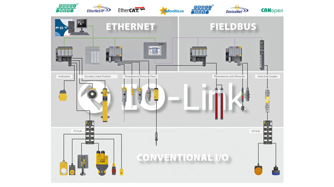 The user benefits enormously from the flexibility that IO-Link provides for the requirements of this system. Turck's BL20-4IOL gateways with IO-Link master modules and the IO-Link-capable IP67-TBIL I/O hubs bring up to 16 switching signals from the field to the control cabinet via a single three-wire cable. The TBIL functions as an IO-Link slave, bringing 16 binary signals to the IO-Link master on the BL20 gateway. This considerably reduces wiring effort and wiring errors. The alternative passive junctions with large multipole cables are more expensive and time consuming.