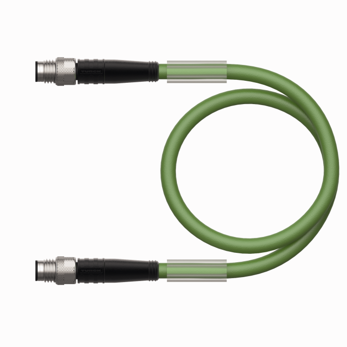 Cable for Industrial Ethernet, extension cable, M8 male connector, straight to M8 male connector, straight, cable length: 2 m, jacket material: PUR, green |
