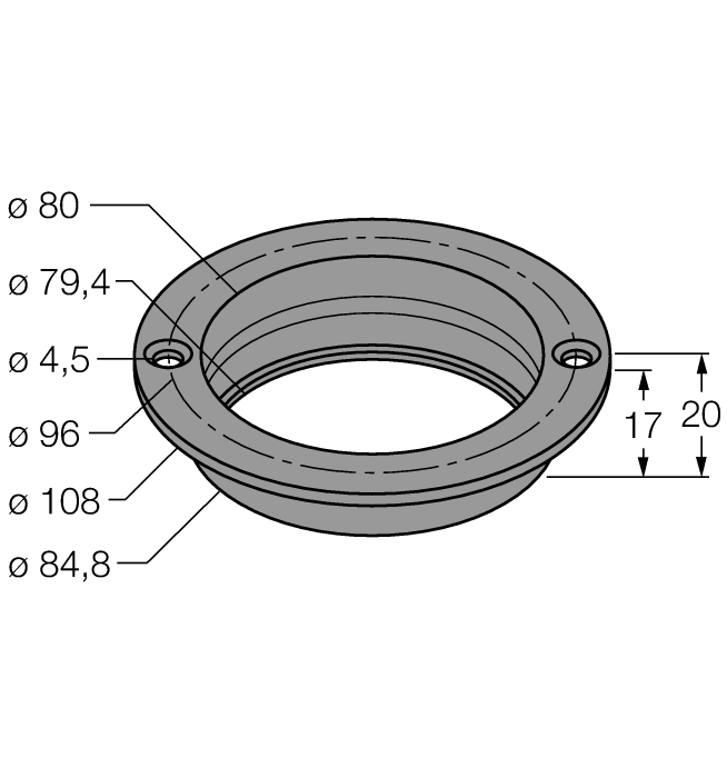 The flange facilitates mounting of the tag TW-R80-M-B128 (-K2) on or in metal. |