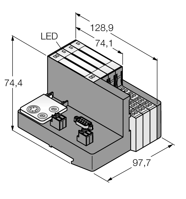 • LEDs for display of supply voltage, group and bus errors as well as status and diagnostics