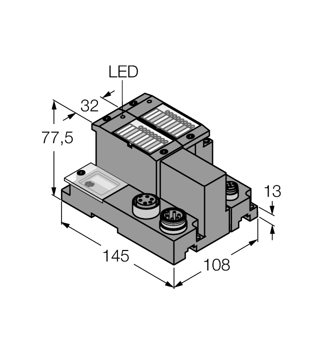 - LEDs for display of supply voltage, group and bus errors as well as status and diagnostics