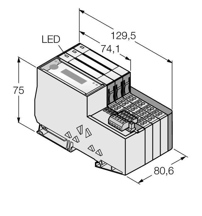 - LEDs for display of supply voltage, group and bus errors as well as status and diagnostics