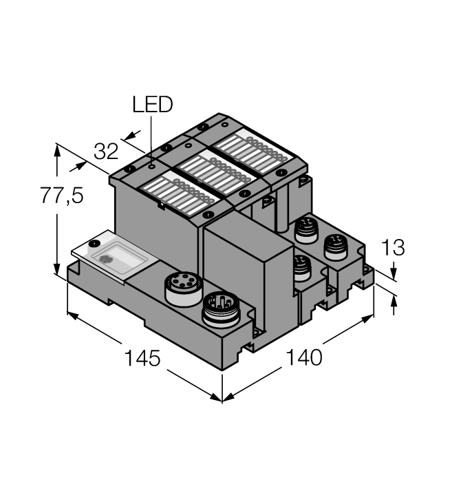 - LEDs for display of supply voltage, group and bus errors as well as status and diagnostics