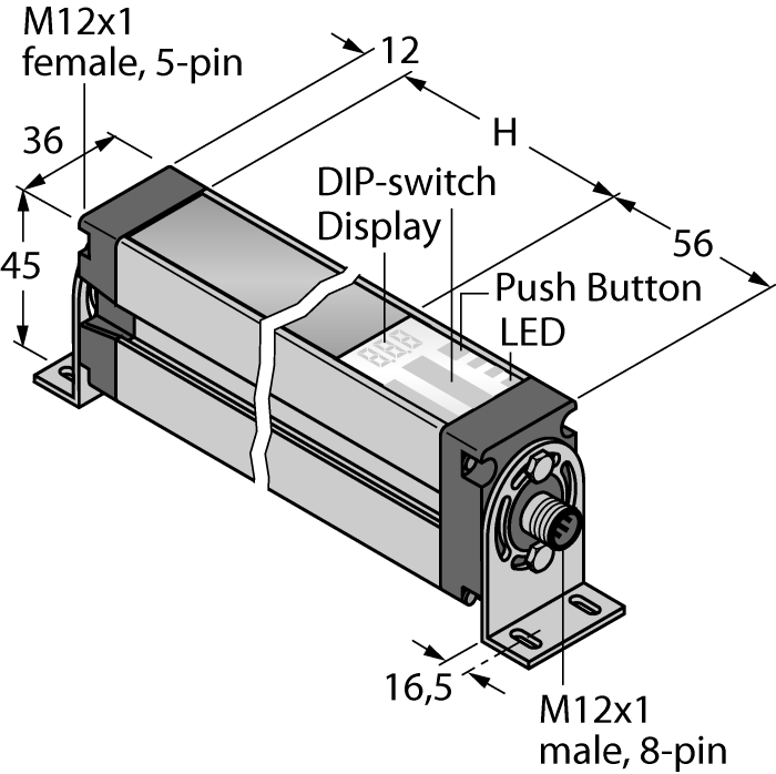 - Modbus RTU via RS485, female M12 × 1, 5-pin